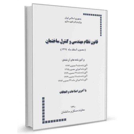 کتاب قانون نظام مهندسی و کنترل ساختمان ویرایش ۱۳۹۰ یکی از مواد اصلی آزمون نظام مهندسی برای کلیه رشتههای هفتگانه مهندسی (عمران، معماری، مکانیک، برق، شهرسازی، ترافیک، نقشهبرداری) میباشد. قانون نظام مهندسی و کنترل ساختمان که در اسفند ماه سال ۱۳۷۴ به تصویب رسیده است از زمان تصویب تا کنون دستخوش تغییرات زیادی گردیده است. اما به یاد داشته باشید که این کتاب در حکم یک قانون است و اگر تغییری در مواد آن بوجود آید متن قانون تغییری نمیکند بلکه برای آن اصلاحیه، تبصره، متن جایگزین و بند الحاقی صادر میشود. تغییرات مذکور تا کنون در پنج نوبت و در قالب پنج تصویبنامه مجزا به به این قانون اضافه شدهاند.